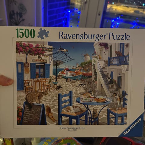 Ravensburger "Cottage by the River" -palapeli (1500 palaa), uusi ja vielä avaamaton.