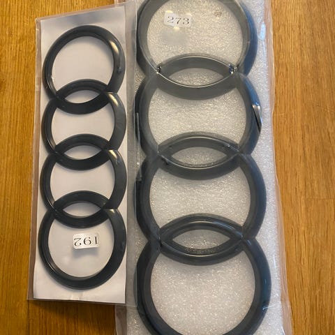 Kiiltävän mustat Audi logot maskiin ja takaluukkuun. 285mm (maskiin) ja 192mm (takaluukkuun).