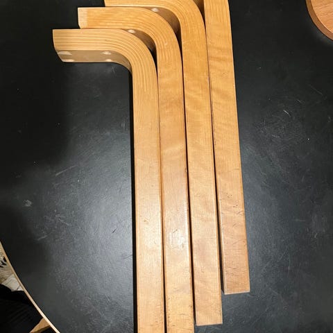 Käyttämättömäksi jääneet Artekin saarniviiluiset holkkijalat useamman vuosikymmenen takaa. Tehtaan pakkauksissa. Neljä jalkaa, kunkin korkeus 60,5cm.