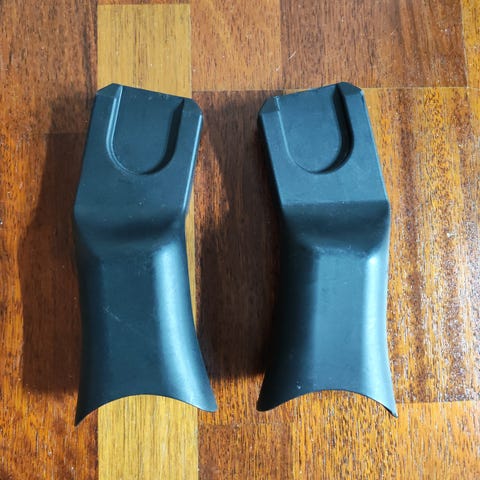 Turvakaukaloadapterit kiinnitetään rattaiden runkoon ja turvakaukalo napsautetaan niihin kiinni.