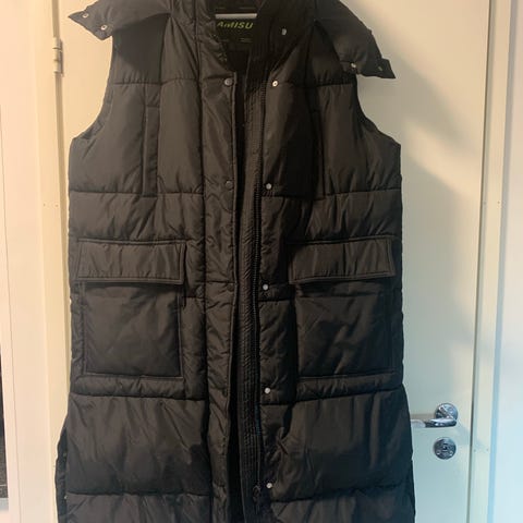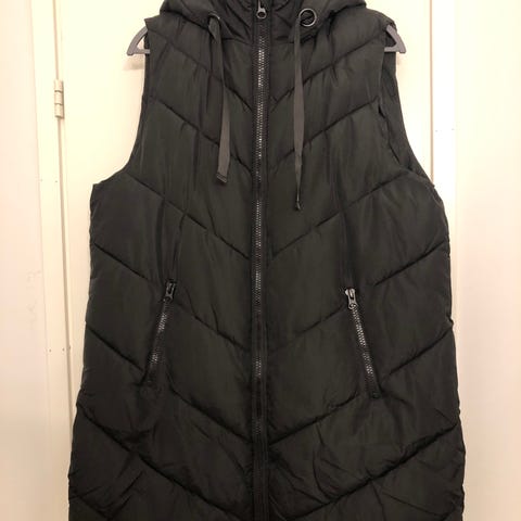 Täysmusta, oikeasti uudenveroinen, erittäin muhkea, lämmin ja siisti kauluksia myöden.Huppu ja hupussa kiristys nauhat. Edessä vetoketjulliset taskut. Pari kertaa käynyt päällä, mutta itselleni ei ollut sopiva.Kai-Kai 63, olka-helma 90. L-XL. Aavistus helmaan levenevä.