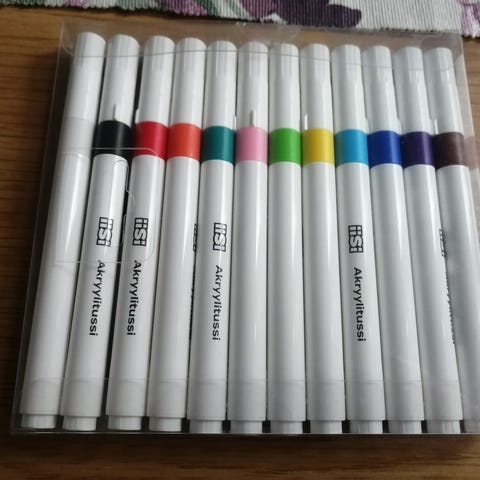Tusseja, saksia, liimapuikkoja ja muita askartelu- ja piirustustarvikkeita