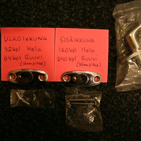 Kuvassa näkyvät messinkiset ikkunahelat yhteishintaan. Voin tarvittaessa myös lähettää.