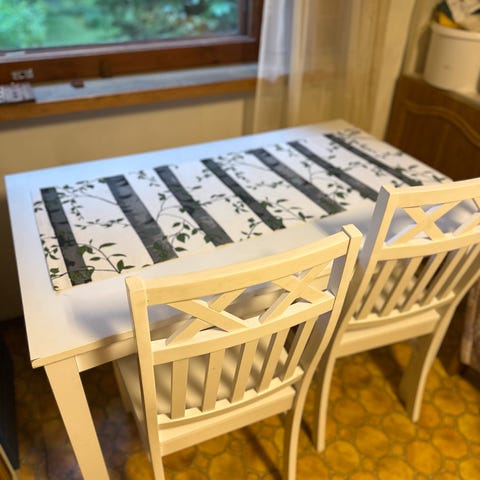Myynnissä pieni ruoka ryhmä pyöreä pöytä halkaisija 90c 4tuolia yht erja rauta.