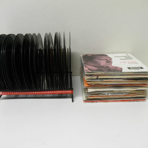 Siistejä, ehjiä ja tyylikkäitä levytelineitä jostain -50 - 60 luvulta
