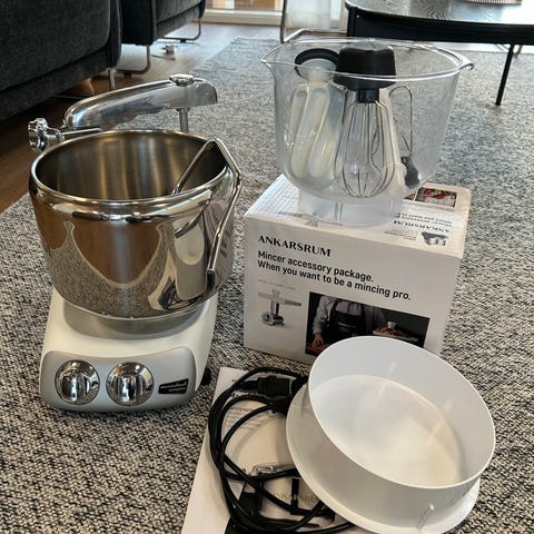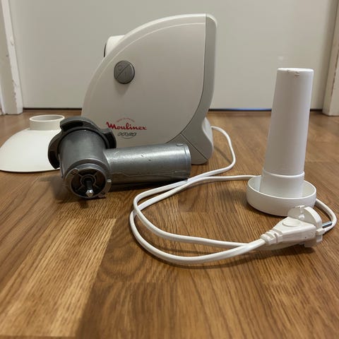 Spannmålskvarn. Fungerar, men grovleksspaken behöver hållas på plats under malning. Har inte använts på flera år.