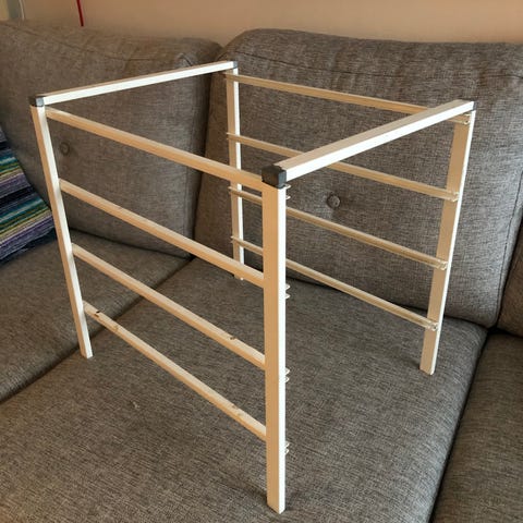 Lundbergsin henkariteline, jossa reikiä vaateripustimia / henkareita varten.