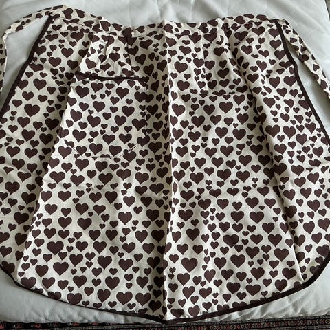 Musta-valkoraitainen M-kokoinen pitkä kietaisuesiliina. Vyötärömittaa voi säätää, samoin kuin olanyli meneviä osia. Hameosa on vyötärö/helma 70 cm ja 90 cm vyötärö/vyötärölle olan yli taakse. Vastapesty ja silitetty ihana emännänessu on noudettavissa skanssista ja voin postittaakin.
