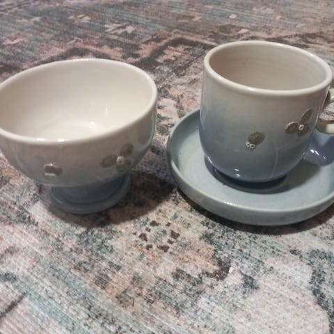 Keramiikka Iso-Pahkalan kuppipari (pohjissa merkinnät) korkeapolttoista kivitavara-keramiikkaa. Kupit ovat elintarvikekelpoisia.