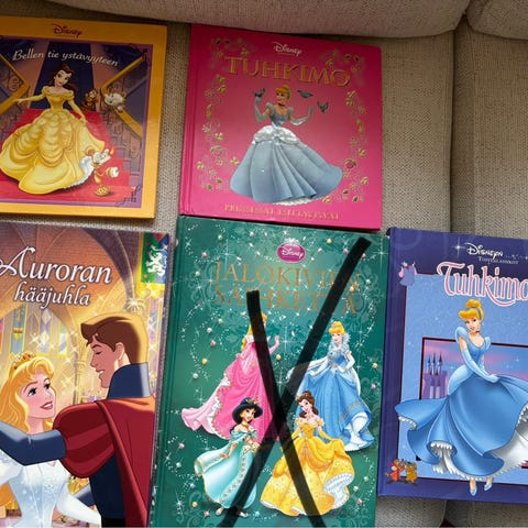 Prinsessatuokio kirja, pelialusta ja 7 hahmoa, leikitty mutta asiansa ajava.
