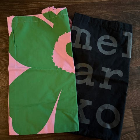 Isokokoinen Marimekko-paperikassi. Kuntoluokitus: Hyvän ja kohtalaisen välimaastossa.