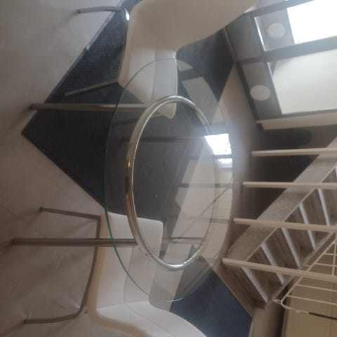 Valkoinen Askon ruokapöytä, jossa on lasikansi. Pöydän jalat ovat valkoiset ja suorakulmaiset. Pöytä on hyvässä kunnossa. Vain nouto Orimattilasta.