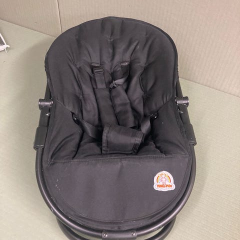 Pikku Piia merkin musta sitteri. Saa säädettyä useamman asennon ja jalat joko lukittaa tai vauvaa voi kevyesti makuuasennossa keinuttaa (kts kuvat). Viisipistevyöt.
