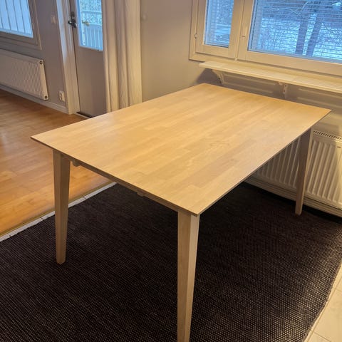 Siisti valkoinen ruokapöytä, halkaisija 100cm. Jalat saa tarvittaessa irti.