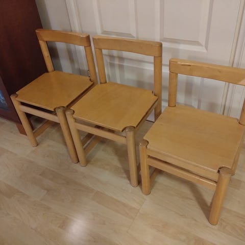 Myydään hyväkuntoiset ja jämäkät lasten puutuolit. 10€/kpl.