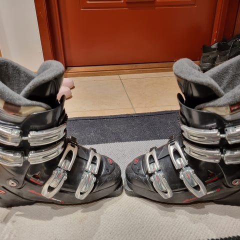 Tecnica agent 80 laskettelumonot. Kulumaa on, mutta ei haittaa käyttöä. Kiinnitysmekanismit toimii. Pohjallisen mitta 260-265 mm, ulkomitta 305 mm. Sopivat noin 40 koon jalkaan.