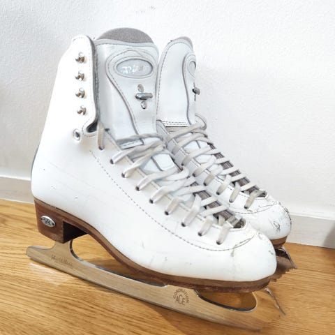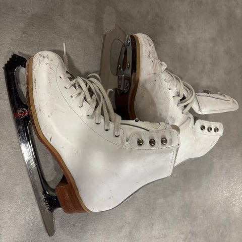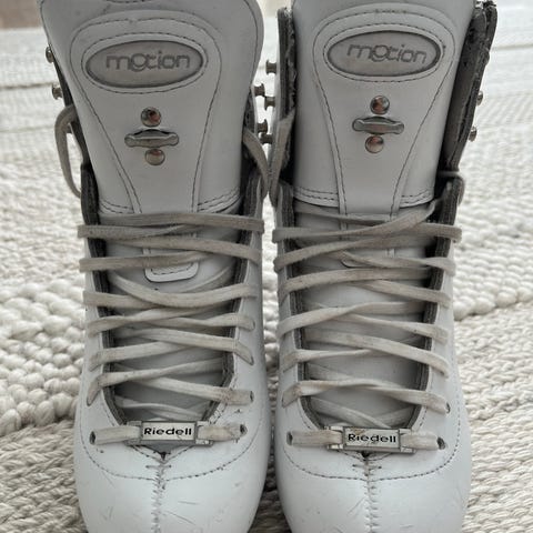 Riedell 255 Motion luistinkenkä on jo melko käytetty. Kolhuja pinnassa ja kulumaa sisällä varressa. Kantaa kirjattu tarralapuilla, jotka pysyneet hyvin eikä ole haitannut käyttöä, Kenkä ostettu käytettynä Lucky Skatesta, jossa siihen laitettiin uusi Coronation Ace 9,25” terä. Luisteltu sen jälkeen kaksi kautta. Terät siis paljon paremmassa kunnossa kuin kengät. Ulkojäille tai terät irti ja seuraaviin luistimiin.
