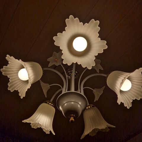 Myydään tarpeettomana 5 lamppuinen kattovalaisin. 5 erikokoista ja väristä kangas ”kupua”. Vikoissa kuvissa näkyy samanmallinen 4 lampun versio (miltä näyttää päällä).