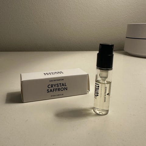 Hajuvesi sample, josta testattu 1 suihkaus iholle.