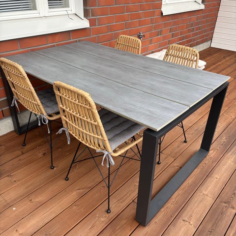 Lasikannella oleva puutarhapöytä halkaisija 60