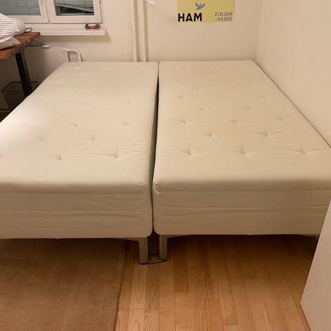 Siistikuntoinen, noin 7-vuotta vanha runkopatjasänky. Napakka medium-jäykkyys, vyöhykejousitettu. 23 cm korkeat Irrotettavat jalat. Sängyn kork. lattiasta ilman petauspatjaa n. 54 cm. Tummanharmaa kangasverhoilu. Täysin ehjä, ei tahroja. Ei ole ollut eläintaloudessa.