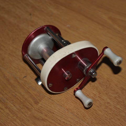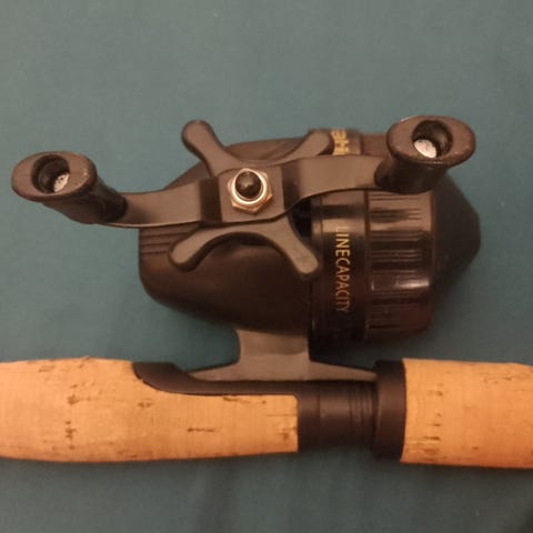Veikkaus -60 luku, ei mitään valmistajan merkintöjä yms. Hienon näköinen peli kalakämpän seinälle. Kela irtoaa vavasta, rulla pyörii (huonisti), vapa purettavissa Ja siima kestää 😆 sellaista vaijeria. Vapa 80cm, purettuna 55cm. Kelan rulla halk. 50mm ja n.60mm leveä Postitus hankala, pitkä paketti mutta myydään vain kokonaisena.