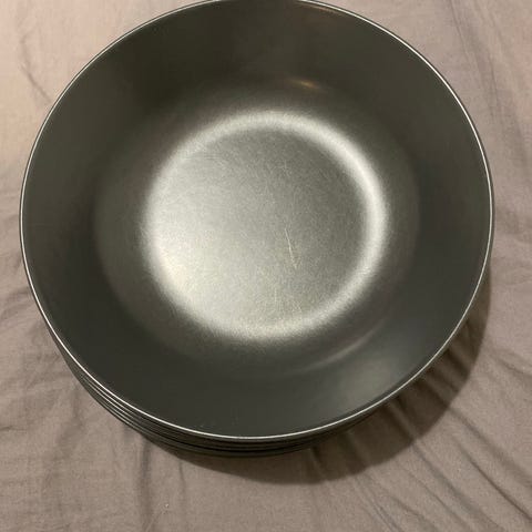 Ikean mustia lautasia: 6 tavallista, 5 syvää ja 3 pientä.