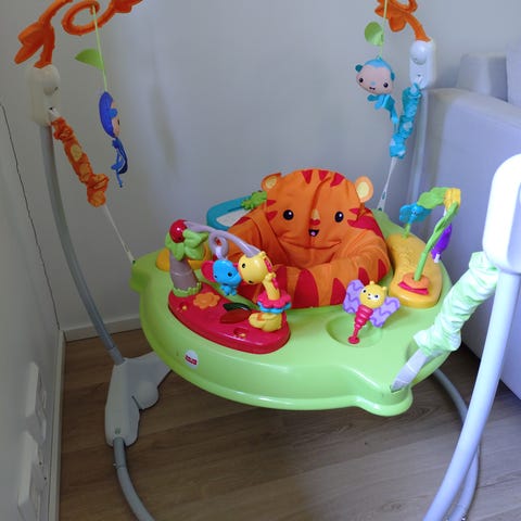 Fisher Pricen avaruusteemainen hyppykiikku/hyppytuoli. Hyvä, käytetty kunto, muutamia naarmuja. Äänet toimivat normaalisti. Tuolin saa taitettua kasaan viemään vähemmän tilaa.