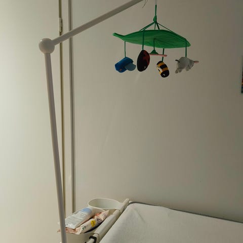 Pinnasänkyyn kiinnitettävä Mobilen pidike /teline. Saa säädettyä kahteen eri pituuteen.