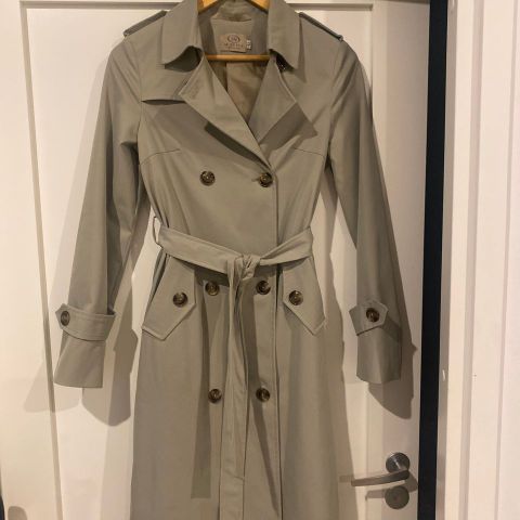 Uudenveroinen harmaasininen vedenkestävä trenssitakki. Koko S, mutta mallinsa ansiosta menee isommassakin koossa. Kainalo-kainalo 55cm ja olka -helma 114cm.