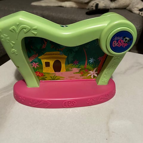 Littlest Pet Shop leikkitalo, jossa on useita kerroksia ja tiloja leikkeihin.