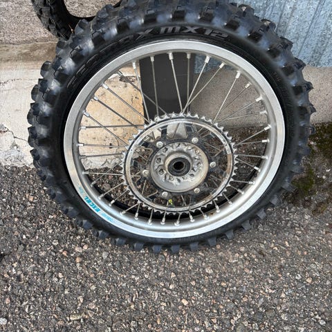 Yamaha yz 125/250 Uuden veroiset vanteet (alkuperäiset) (ratas ja jarrulevyt) ja vähän ajetut Trelleborg piikkirenkaat.