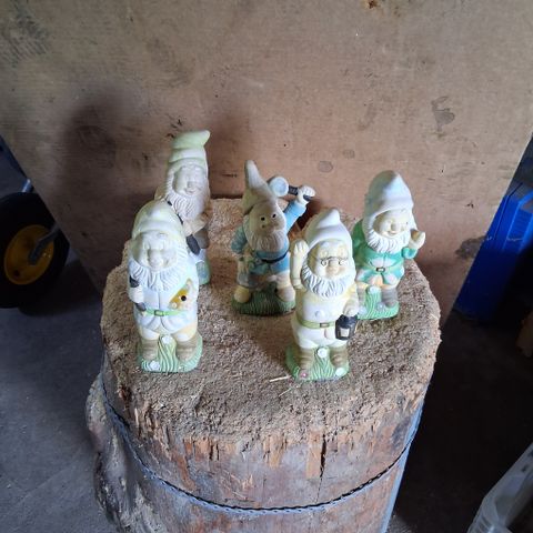 Myydään ulkokoriste tonttuja, erilaisilla ilmeillä.