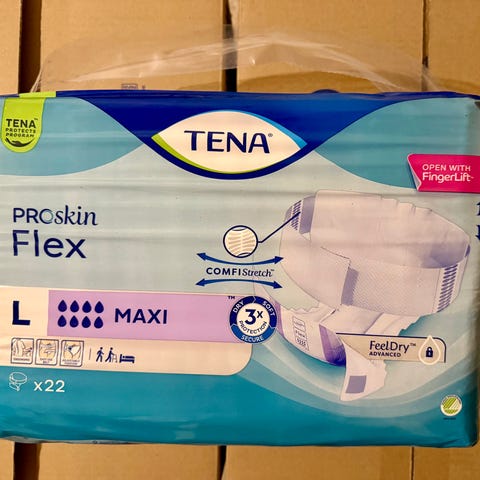 TENA ProSkin Flex aikuisten vaippa, koko L. Vyöllinen suoja keskivaikeaan ja vaikeaan virtsankarkailuun. Sopii naisille ja miehille. Päivä- tai yökäyttöön. Lateksiton.