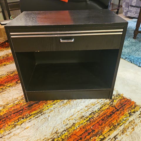 Näyttävä kokonaisuus. Varustettu viidellä vetolaatikolla. Kiskot jumittavat ylimpien laatikoiden osalta joskus, mutta toimivat muuten ok.