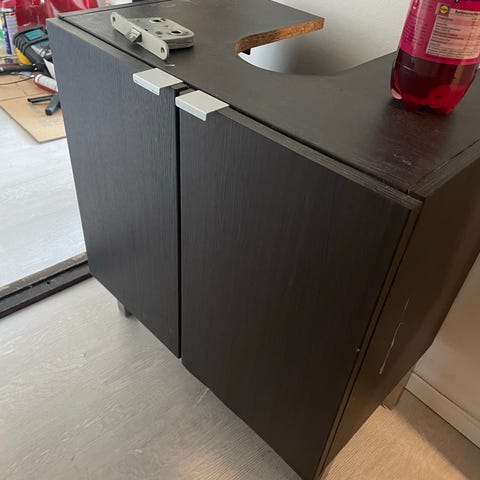 Tämä tyylikäs kaappi on valmistettu levystä, joka tekee siitä tukevan ja vakaan. Kaapissa on kaksi lokeroa, jotka tarjoavat runsaasti tilaa kylpyhuonetarvikkeiden säilyttämiseen. Se on helppo puhdistaa kostealla liinalla.
