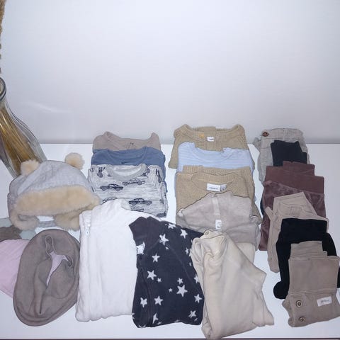 Nämä vaatteet mennyt meillä vastasyntyneestä 3kk asti. Osaa käytetty enemmän, osa vain kerran pidetty.