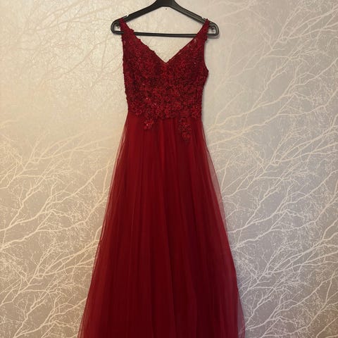 Kauniin punainen Zazabellan (Dazzling) vanhojentanssimekko. Ostettu uutena liikkeestä ja tanssittu kerran. Koko 34 ja nyörien takia sopii S-M vaatekokoja käyttävälle. Kuvissa mekko 171 cm tyttäreni päällä tennareilla tanssittuna. Mekossa on taskut.