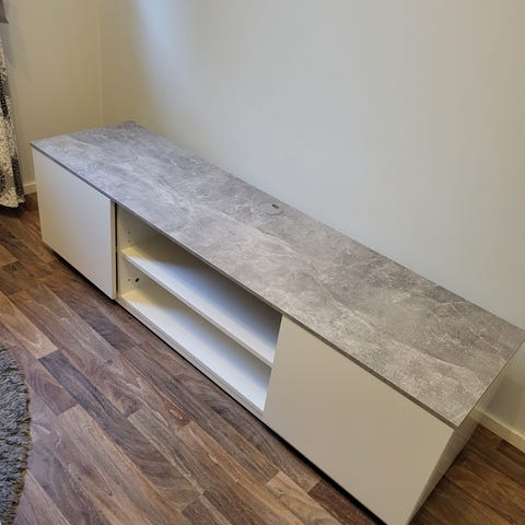 TV-taso 150×40×84cm. Seinäkaapit (2kpl) sisävalolla 60×36×100cm. Keskimmäinen seinäkaappi 105×35×40cm. Nouto Simonkylästö, Vantaalta. Myynnissä useammissä paikoissa.