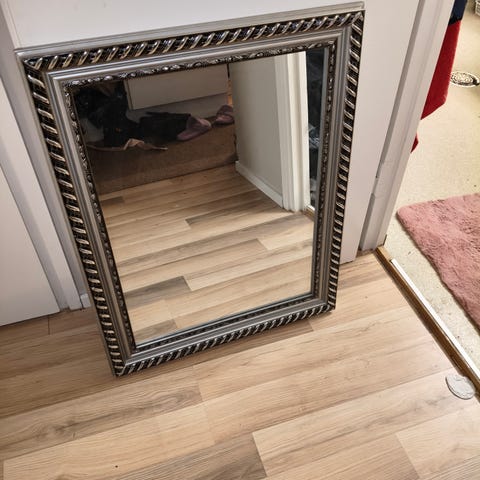 Valoilla varustettu wc:n tai kylpyhuoneen kookas peili, jossa yksi hyllytaso. Korkeus 72 cm, leveys 60 cm. Valot halogeenit. Ei kolhuja. Hyllytasossa hieman käytön jälkiä, mutta siltäkin osin ihan ok ja huomioitu hinnassa. Yksi kannellinen pistorasia valon vieressä.