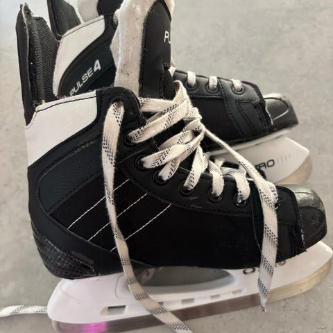Jääkiekkoluistimet lasten koko 34 (pohjallisen pituus 21.7cm). Nauhanpäistä 1/4 rikki. Toinen pohjallinen kateissa.