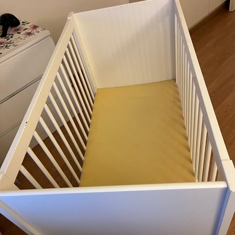 Laskettavalla / poistettavalla laidalla. Pohjan saa myös kahteen eri korkeuteen. Hyvässä kunnossa.