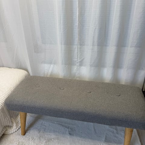 Valkoinen, siisti ja tukeva säilytysjakkara. Sisään mahtuu aika paljon tavaraa. Päällinen tumman sininen.