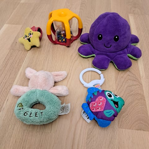 Myydään 2 kpl helistin/puruleluja. Otettiin käyttöön vain 1, meidän vauva 6,5 kk piti tästä lelusta.
