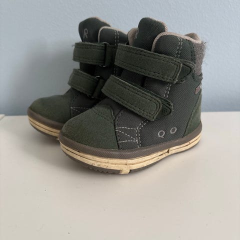 Reiman Ekoelo ensikengät. Yhdellä lapsella ollut käytössä. Hyvät harjoituskengät ja pysyivät jalassa myös kontatessa. Kärjissä kulumaa konttauksen jäljiltä, siisti yleisilme edelleen. Pohjat siistit. Ei ole paljoa kävelty
