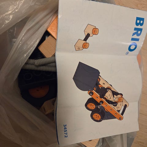 Kuvan Brio Builder 34574 -kauhakuormaaja, kaikki osat (121kpl) tallessa. Erittäin siisti leikitty kunto.