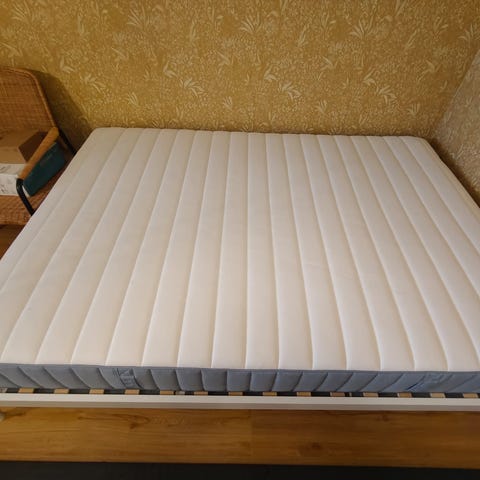 Puolikiinteä jousipatja: https://www.ikea.com/fi/fi/p/vagstranda-pussijousitettu-patja-puolikiinteae-vaaleansininen-70450754/#content