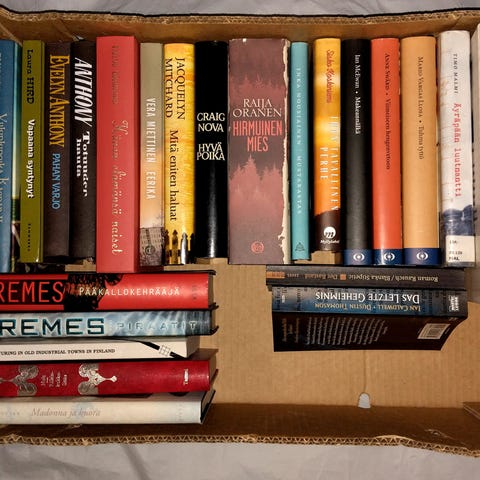 Annetaan kuvan mukainen laatikollinen kirjoja.