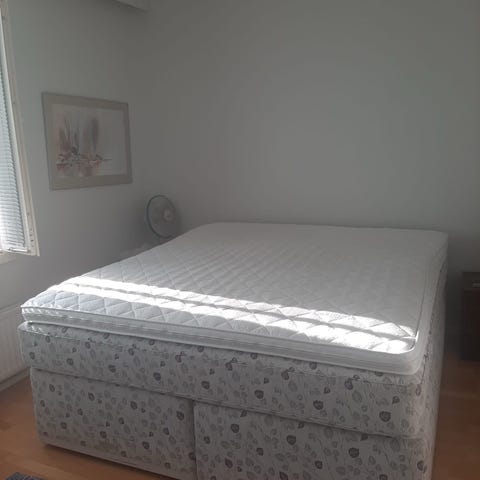 Erittäin hyvä kuntoinen, toimiva moottoroitu parivuode hierontatoiminnoilla. Molemmille puolille omat kaukosäätimet yövaloineen.