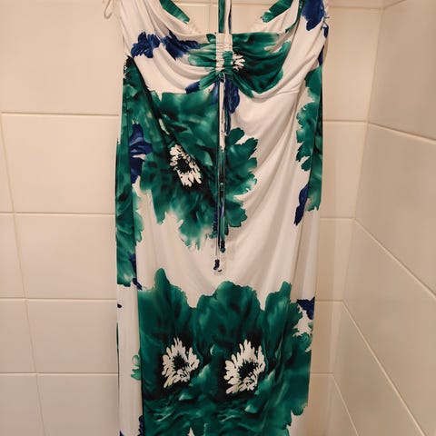 Uusi, käyttämätön Freequent mekko. Intianpuuvillatyyppistä, hyvin laskeutuvaa mallia. Vuorillinen, kai-kai 58 cm, rinnan alla joustonauha, pituus pohkeeseen/nilkkaan.